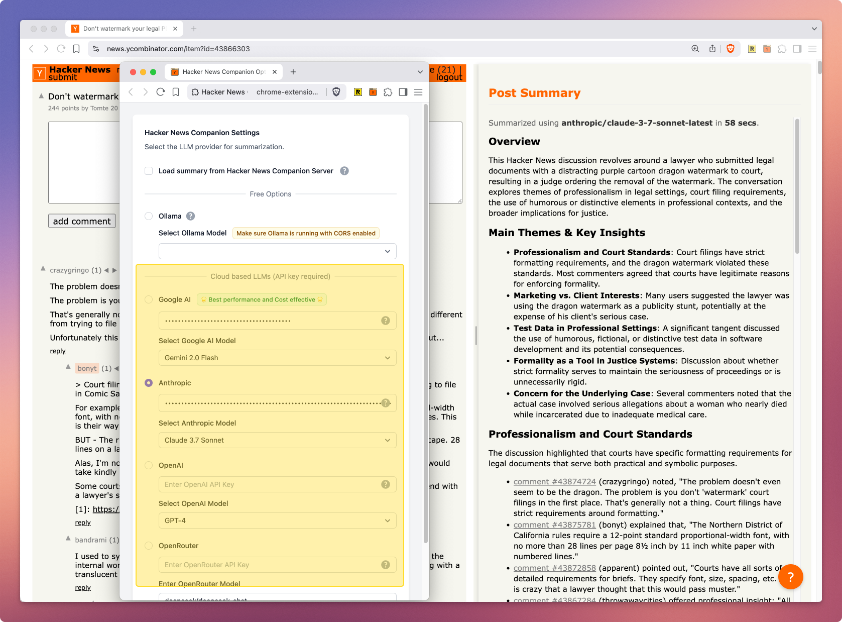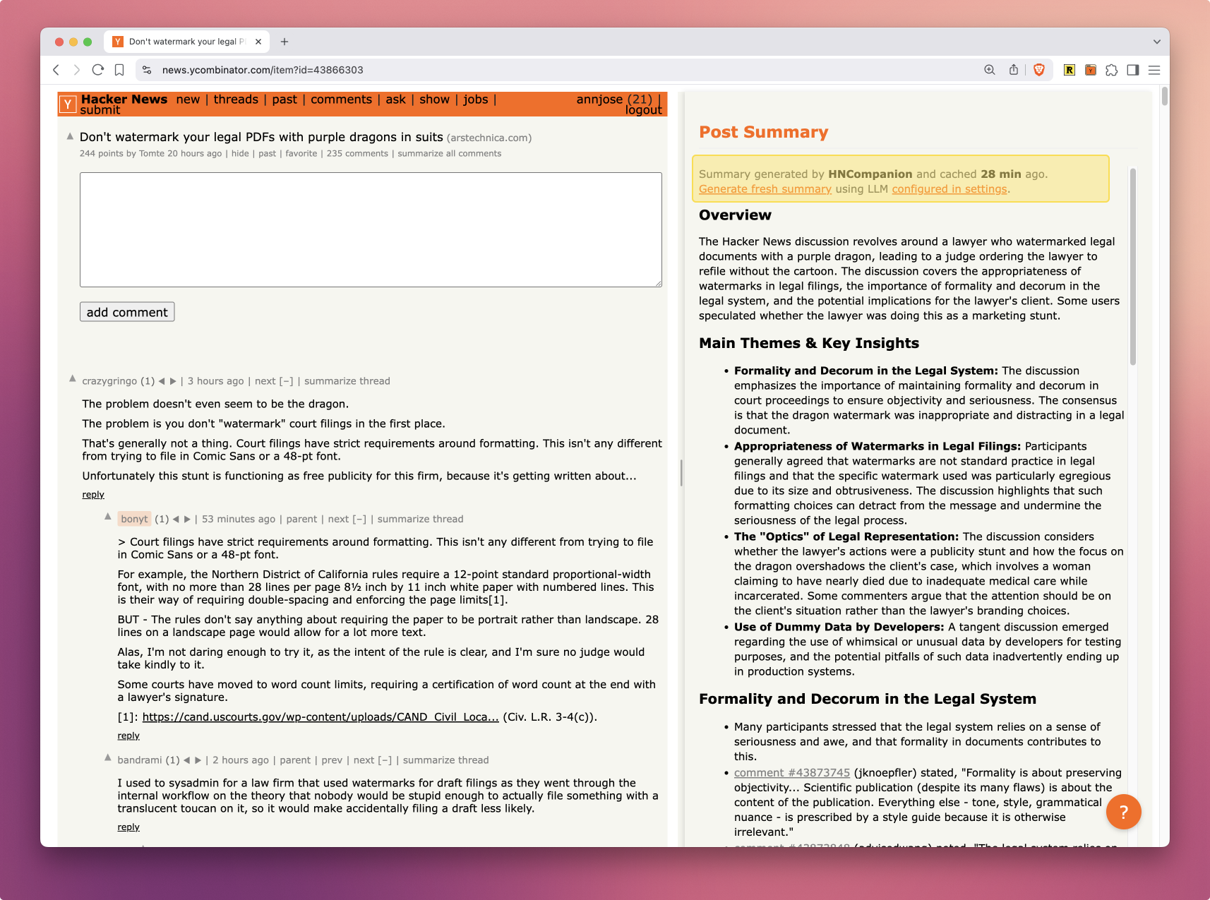 Watch a quick demo to learn how HN Companion summarizes and navigates threads.